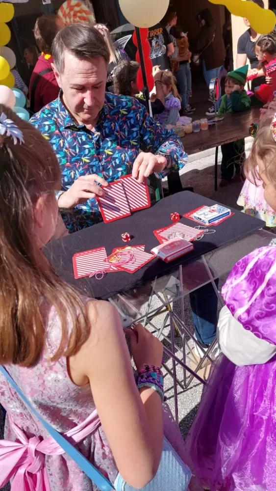 Démonstration close up, suivie de l'atelier magie, où les spectateurs ont pu apprendre des tours avec des cartes, des élastiques, des bouchons... et différentes techniques magiques!